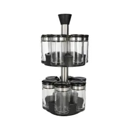 The 360° rotating design allows you to access all 12 jars effortlessly, making cooking faster and more enjoyable. Each jar is transparent, helping you quickly identify spices like salt, pepper, turmeric, cumin, cinnamon, chili, and more, while the airtight lids preserve aroma and freshness. Its compact yet stylish structure fits seamlessly on kitchen countertops, dining tables, or pantry shelves, saving space without compromising style.